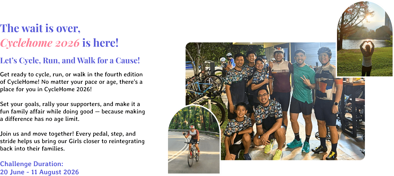 Get ready to cycle, run, or walk in the fourth edition of CycleHome! No matter your pace or age, there’s a place for you in CycleHome 2026!