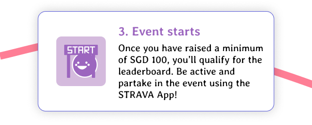 However, a minimum of SGD 100 of funds raised is required to qualify for the event leaderboard.